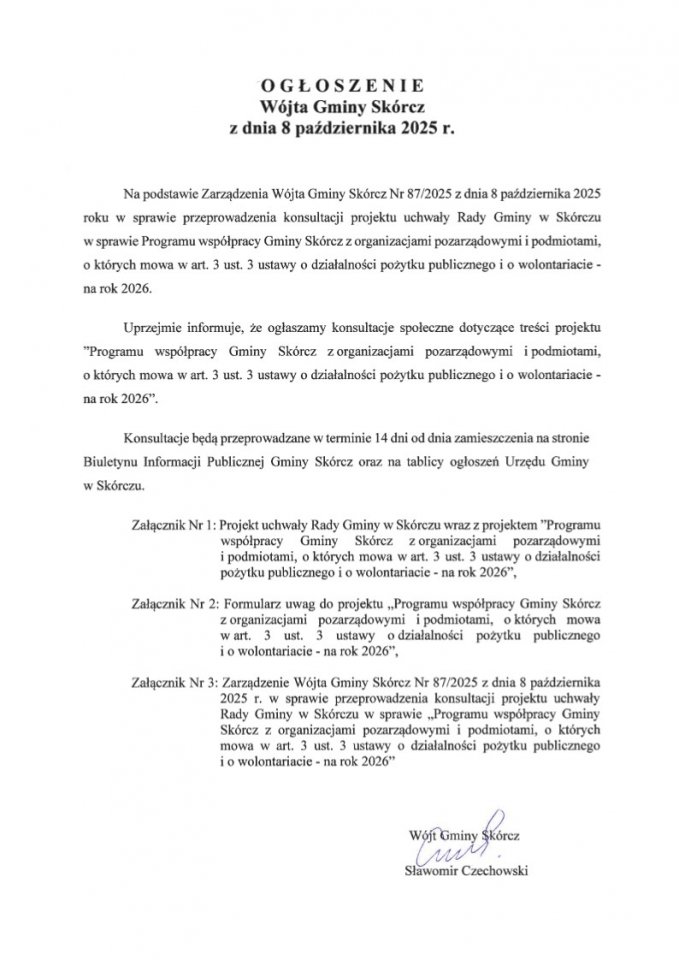 Zarządzenie Wójta Gminy Skórcz Nr 87/2025 z dnia 8 października 2025 r. - POBIERZ