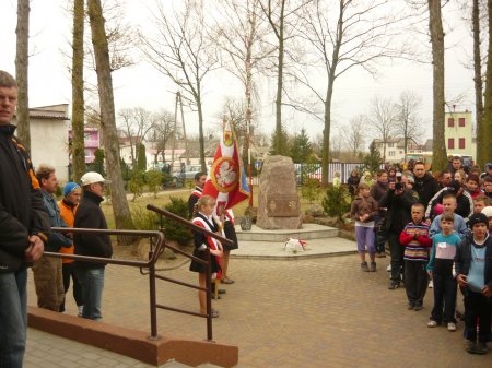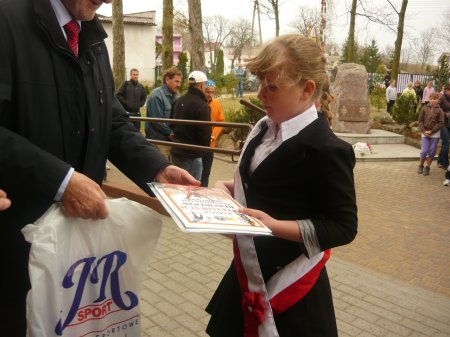 Uroczystość rozpoczęła się odśpiewaniem hymnu oraz złożeniem przez zuchy wiązanki kwiatów pod pamiątkową tablicą. Tradycyjnie też podczas otwarcia biegu wręczono nagrody zwycięzcom w Konkursie Wiedzy o Patronie.